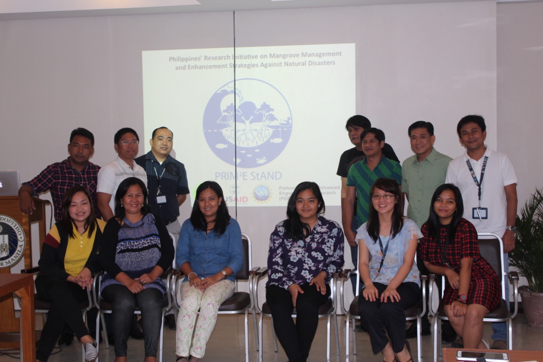 Mr. Randy Vinluan of USAID-Philippines presented the USAID-PEER Program as well as why the project received funding. The official name (including the logo) of the project was launched, as: Philippines’ Research Initiative on Mangrove Management and Enhancement Strategies Against Natural Disasters (PRIM2E StAND).