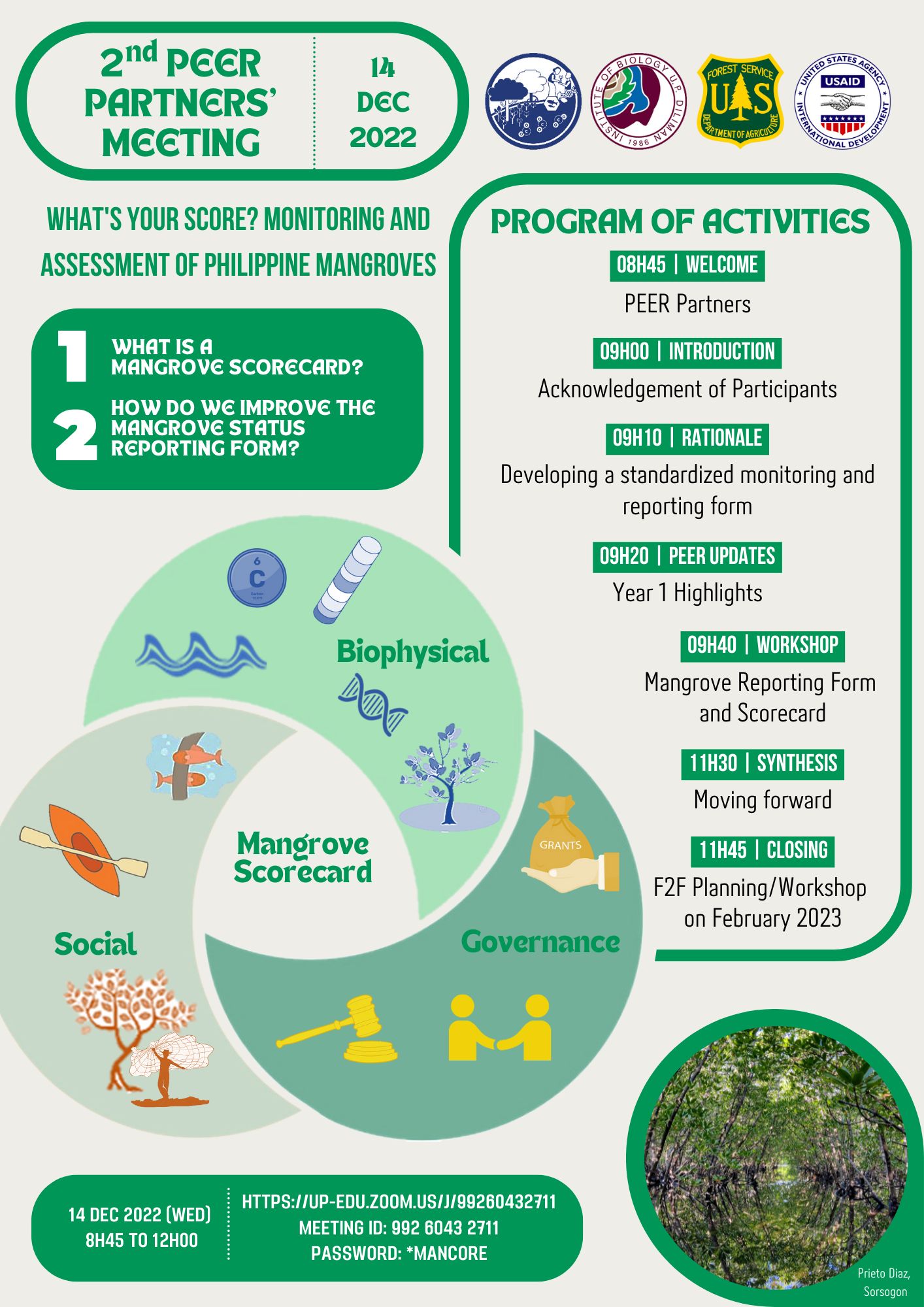 The PEER ManCoRe team will be holding its 2nd Partner’s Meeting, via Zoom on 14 December 2022, from 8:45AM-12:00NN PHT. This meeting will serve as a preparatory exercise for our proposed face-to-face conference in February 2023. The event will mainly focus on discussing the web-based Mangrove Status Reporting Form and its integrated Mangrove Scorecard that was introduced in the previous partners’ meeting.