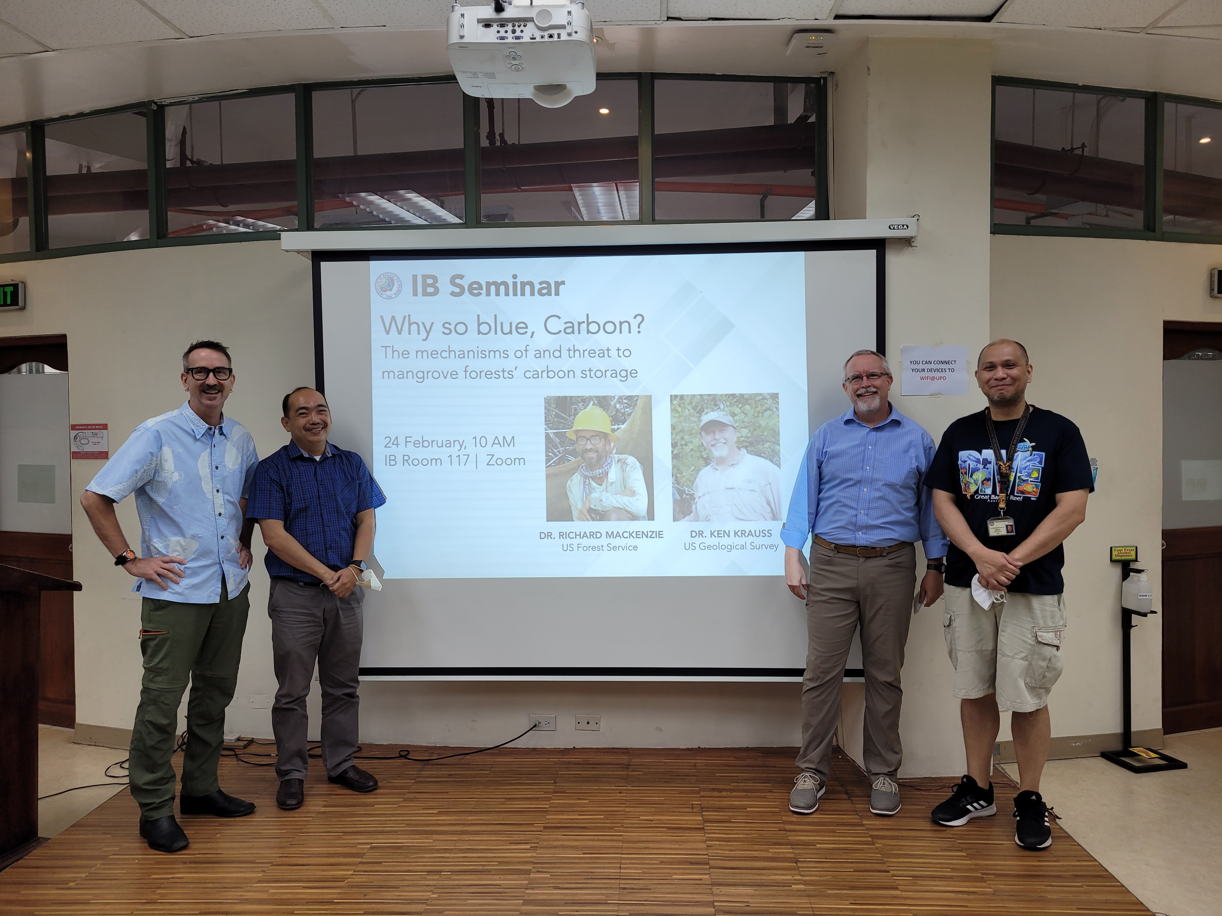 Institute of Biology, UP Diliman – The Why So Blue, Carbon? Seminar given by Dr. Richard MacKenzie of the US Forest Service and Dr. Ken Krauss of the US Geological Survey was successfully hosted last February 24, 2023. A handful of participants, including members of the Water and linked Aquatic-Terrestrial Ecosystems Research (WATER) Laboratory, were able to attend in person while around 70 participants were present in Zoom for the hybrid seminar.