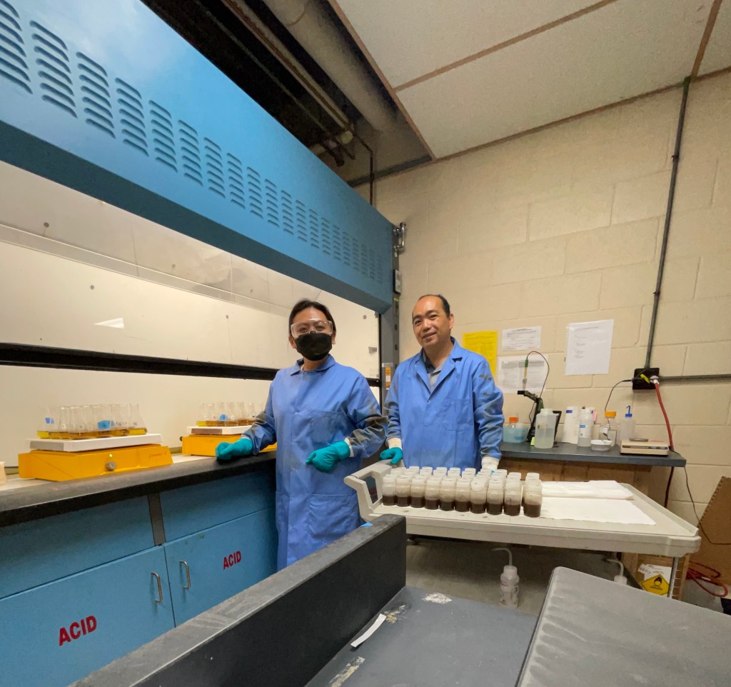 Dr. Salmo and Ms. Gerona-Daga at Val’s laboratory for the Pb-210 dating technique training by Dr. Grow.