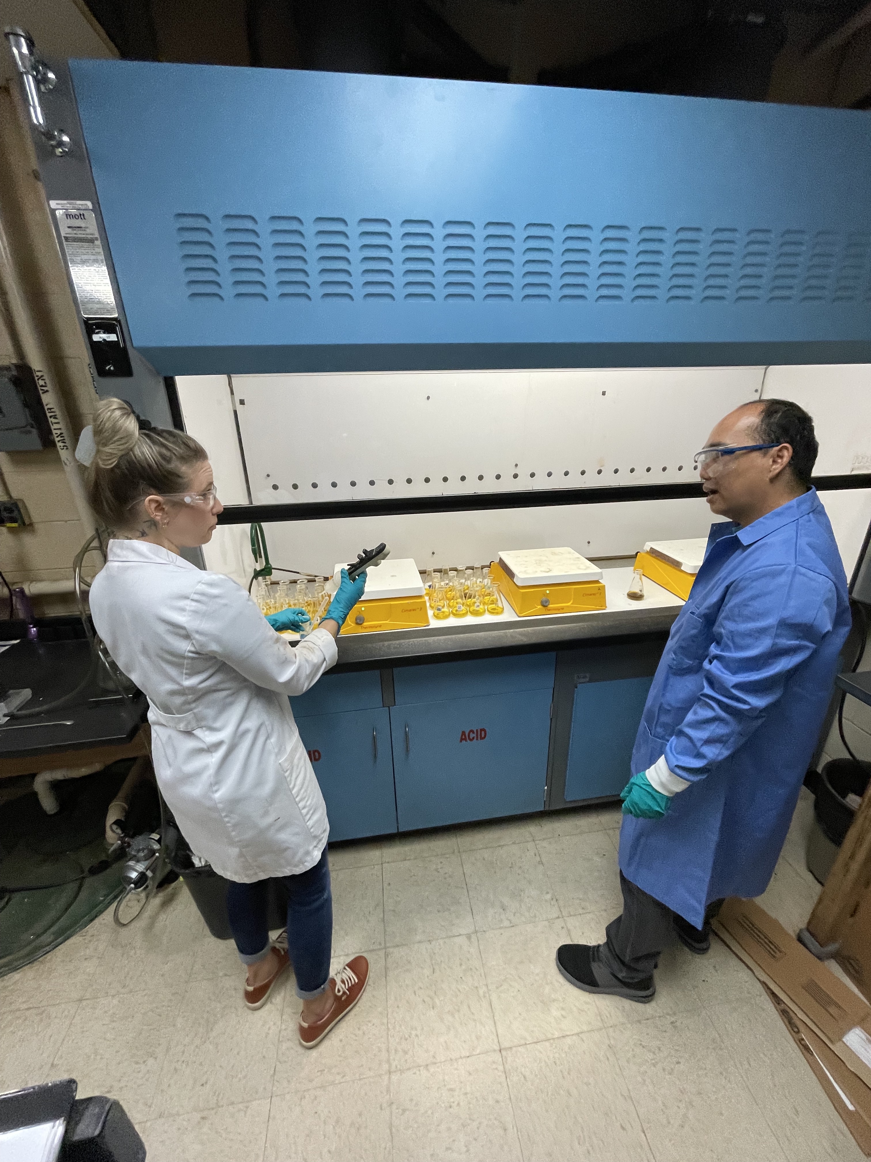 Dr. Salmo and Ms. Gerona-Daga at Val’s laboratory for the Pb-210 dating technique training by Dr. Grow.
