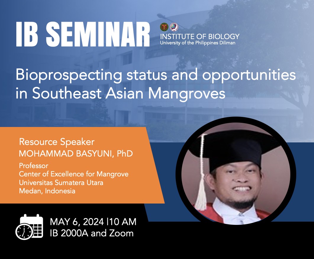 Dr. Mohammad Basyuni, a long-time collaborator of the PEER ManCoRe project, will be holding seminar titled, “Bioprospecting status and opportunities in Southeast Asian Mangroves,” on May 6, 2024 at the Institute of Biology, UP Diliman. Dr. Basyuni is a Professor at the Universitas Sumatera Utara, Indonesia whose research focuses on the mangroves of North Sumatra. For those interested in attending the seminar through Zoom, you may register in advance through this link.