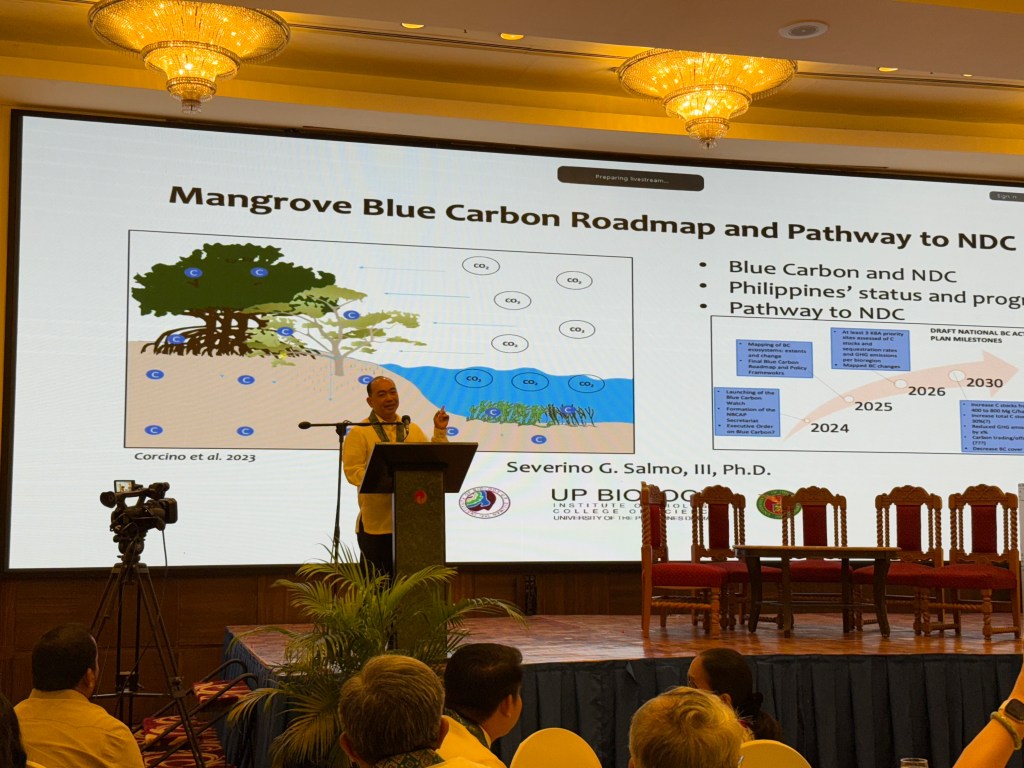 Keynote presentations on mangrove blue carbon research, technologies, livelihood, and financing were delivered by leading experts from various institutions, including Dr. Severino G. Salmo III (University of the Philippines Diliman), Dr. Ariel C. Blanco (Philippine Space Agency), Dr. Yasmin P. Tirol (Aklan State University), Ms. Ma. Josella Pangilinan (Wetlands International Philippines), and Dr. Gopalasamy Reuben Clements (Zoological Society of London). Our very own project leader, Dr. Salmo, discussed the Philippines’ Mangrove Blue Carbon Roadmap and its alignment with the country’s Nationally determined Contribution (NDC) under the UNFCCC. He underscored the need to standardize the country’s blue carbon assessment methods and to institutionalize the blue carbon roadmap as some of the vital steps towards achieving the country’s NDC.