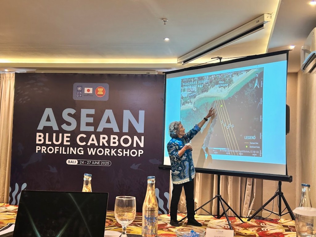 To harmonize the national blue carbon profile of Southeast Asian countries and Timor-Leste, UNDP Indonesia arranged a regional training workshop last 23-28 June 2025 in Bali, Indonesia. The training workshop invited 11 national experts and a technical team member from the participating countries. A team from the Faculty of Geography at Universitas Gadjah Mada(UGM) introduced a set of standardized methodologies that they developed for the project. Seagrass and peatland carbon stock mapping were discussed in a classroom setting, while practical sessions were held for field survey and biomass measurement techniques and laboratory analysis procedures. The team also developed and discussed a unified reporting template for national blue carbon profiles. The structured discussions and field demonstrations allowed the participants to gain hands-on experience and common understanding of the full blue carbon assessment process.