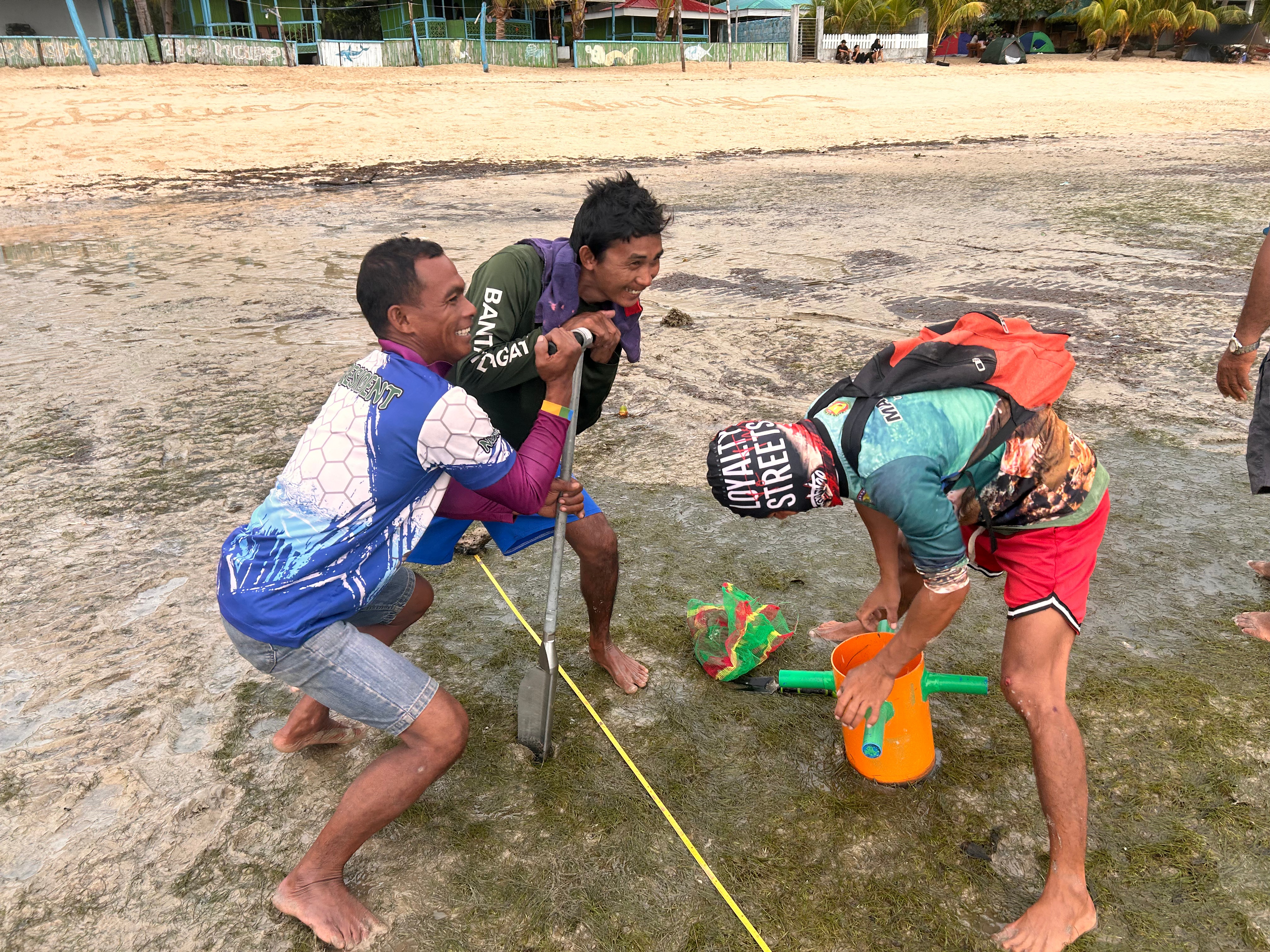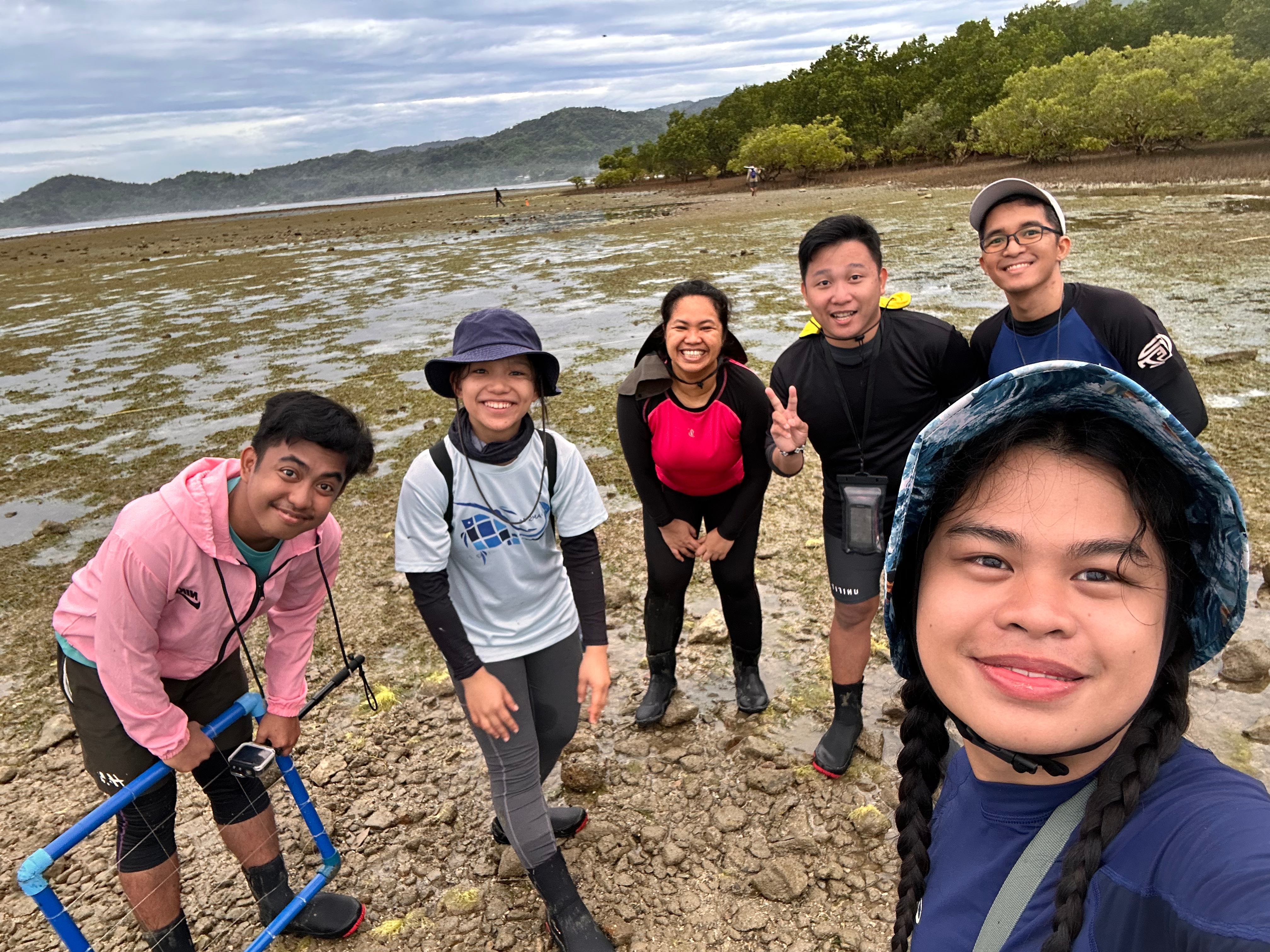 Dr. Salmo led the seagrass team, consisting of Precious Jacob (Research Associate and MS student), Tin Solomon (undergraduate student), and Geodetic Engineering students Chris Sumilang and Edgar Dumalaog. The team collected biomass and sediment samples, assessed seagrass cover, and conducted seagrass mapping validation in Mansalay. Dr. Tamondong and Asst. Prof. Medina joined the seagrass team during the latter half of the fieldwork.