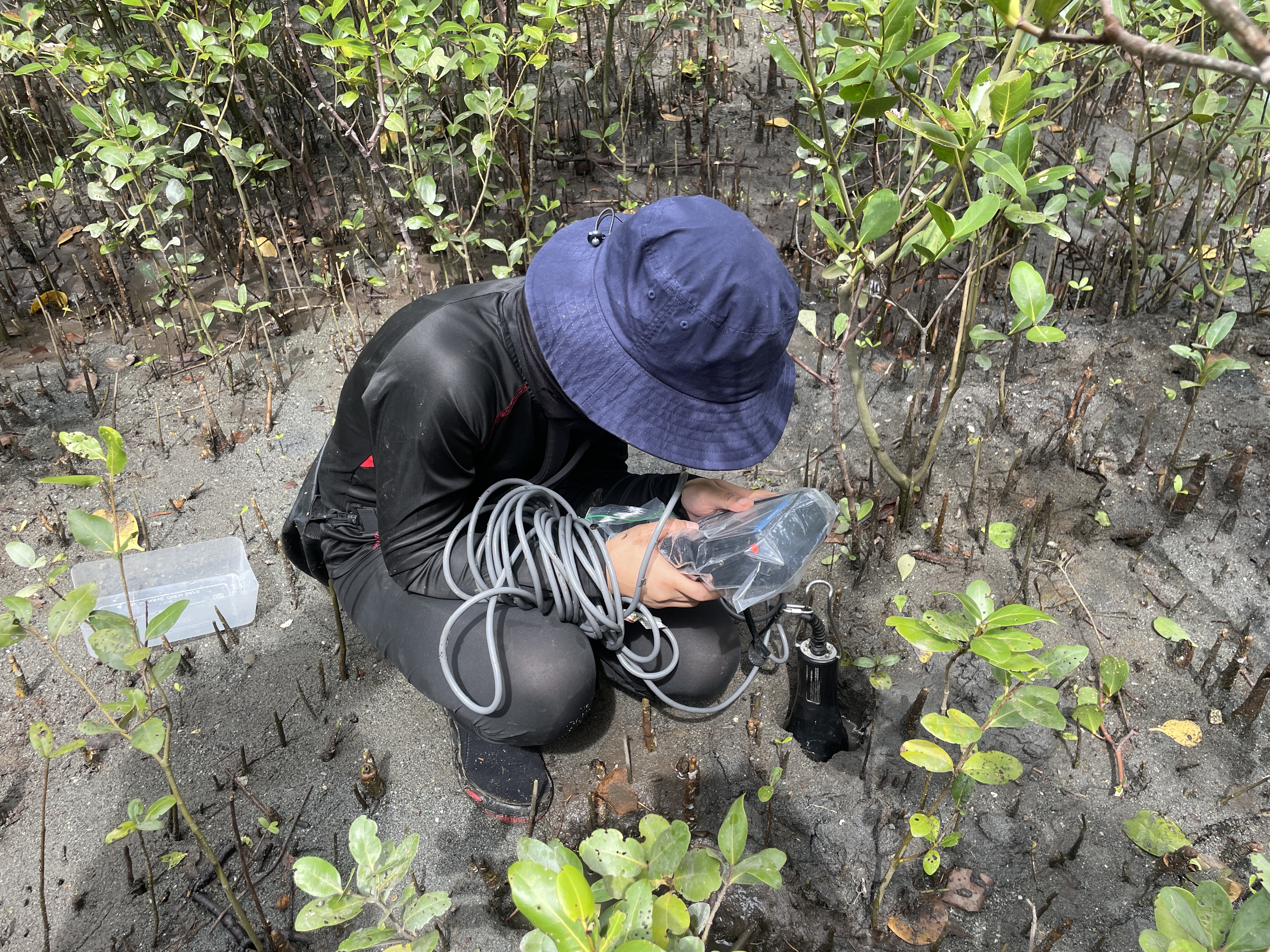Pneumatophore and burrows were measured to assess vegetation structural complexity and faunal activities. Porewater variables were also measured using the Horiba multiparameter instrument.