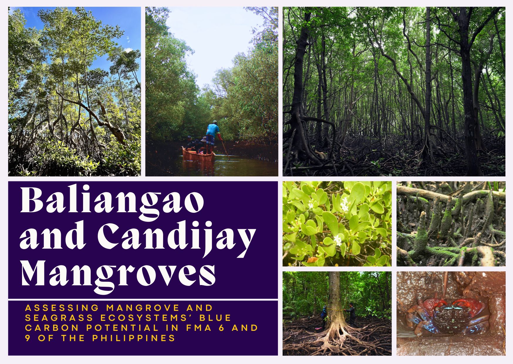 The Philippines is laden with blue carbon ecosystems (BCEs). In particular, the country is both a mangrove diversity and mangrove loss hotspot. Under the Philippine Fisheries and Coastal Resiliency Project (FISHCORE)’s Pilot Program for Climate Resilience (PPCR), the study looks into the blue carbon potential (BCP) of representative FMA 6 and 9 mangrove areas through remote sensing and field measurements, The BCP of seagrass meadows in FMA 6 and 9 will also be assessed through bibliometric analysis of available data.