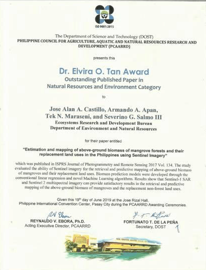 - Our co-authored paper was awarded as Outstanding Published Paper in Natural Resources and Environment Category by PCAARRD on 19 June 2019.